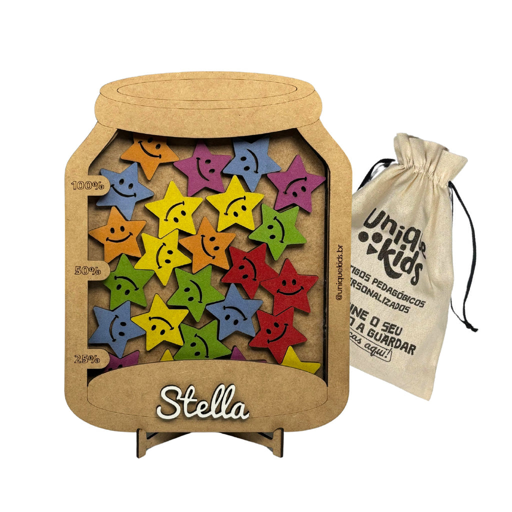 Acompanha: Pote da conquista, suporte de apoio e 32 estrelas coloridas
