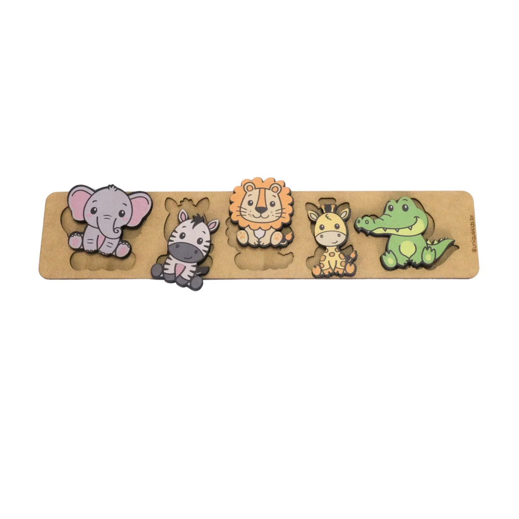 Acompanha: Base + animais (elefante, zebra, leão, girafa e jacaré) - Não é possível fazer alteração dos animais - NÃO ACOMPANHA SUPORTE