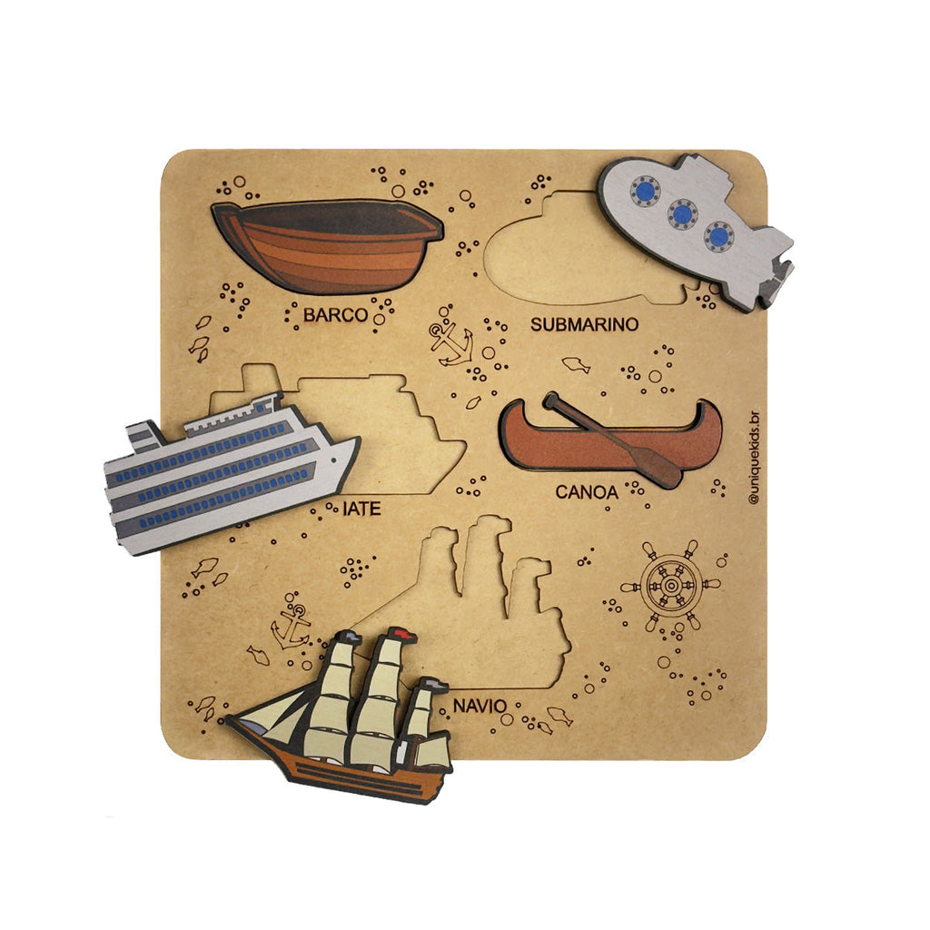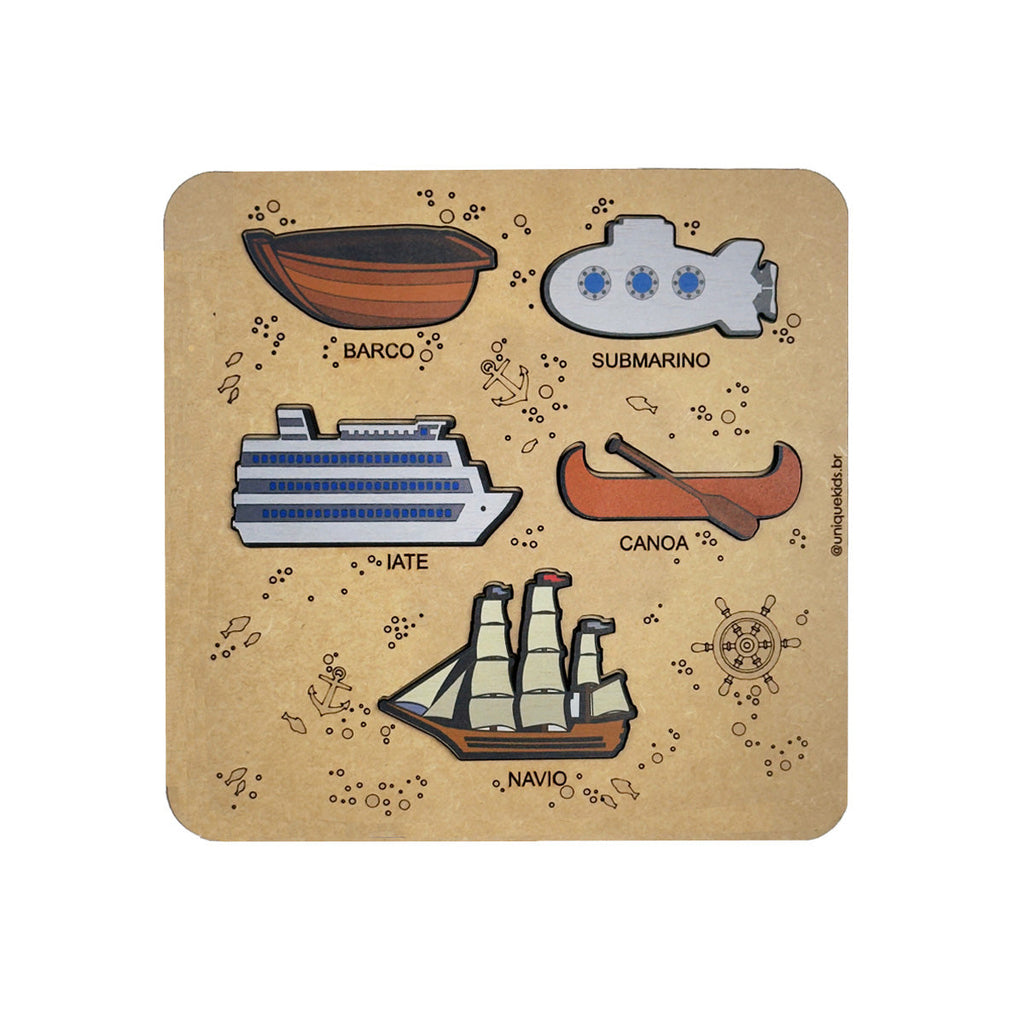 Acompanha: Jogo de encaixe transportes marítimos